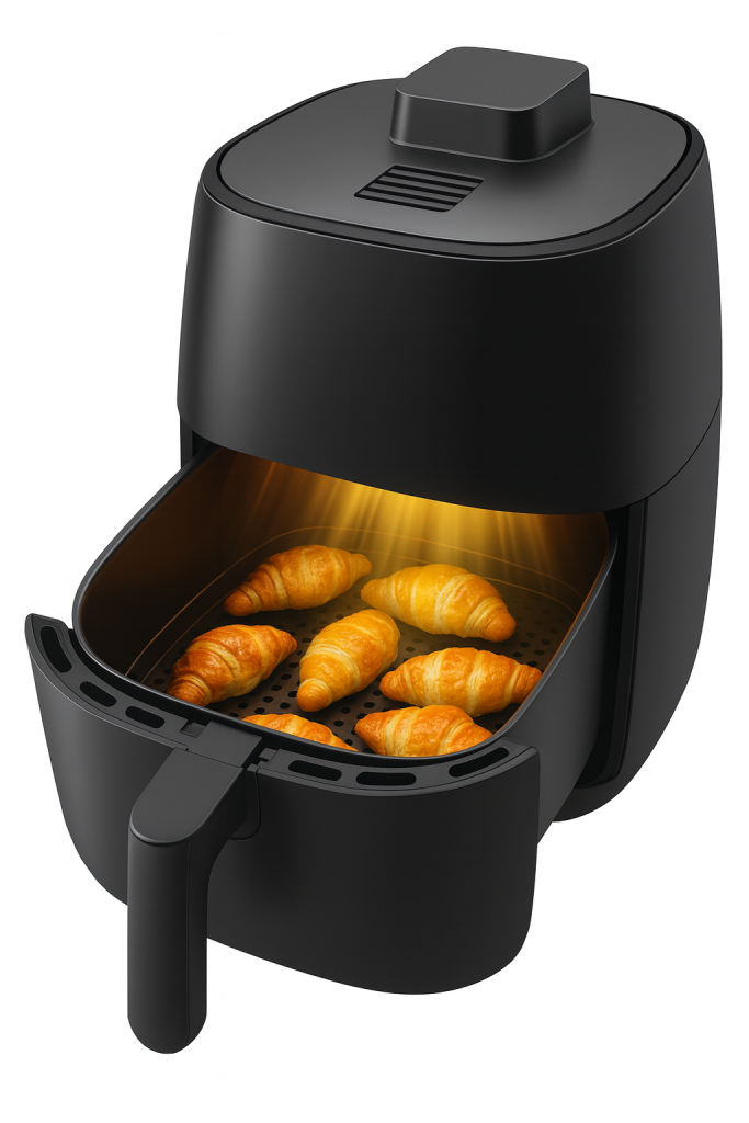 L’air-fryer, plébiscité pour sa capacité à « frire sans huile », soumet les aliments à des flux d’air chaud turbulent pouvant atteindre 200°C. Si l’aliment contient déjà des microplastiques issus de la transformation industrielle, ces conditions extrêmes accélèrent leur dégradation et la migration de composés toxiques (ex. PVC => benzène / PS => styrène).